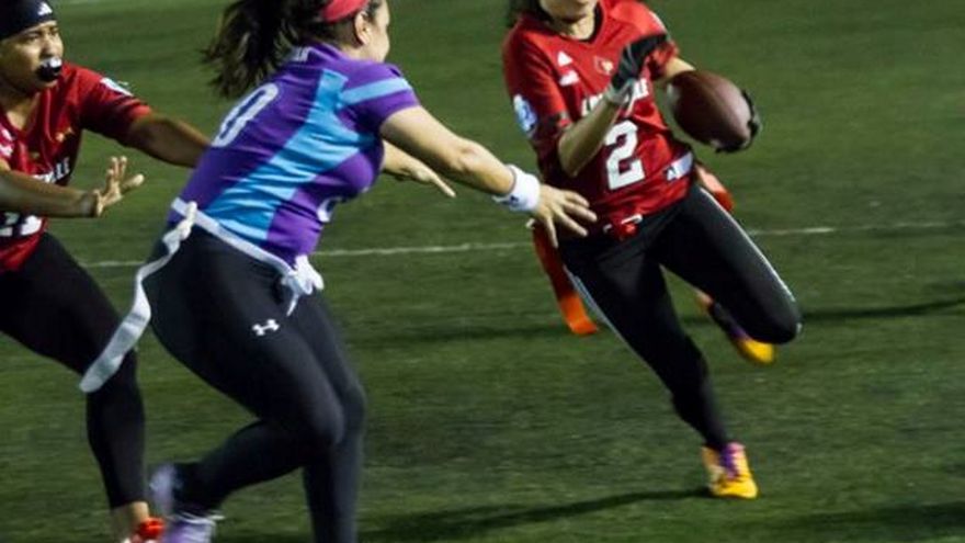 En el ‘Cascarita’ los resultados quedaron así: las Cardinals vencieron 13-0 a las Valkirias y luego las Rebels le ganaban 16-6 a las Wolfpacks. Esto es la acción del ‘Cascarita’ Tapia.