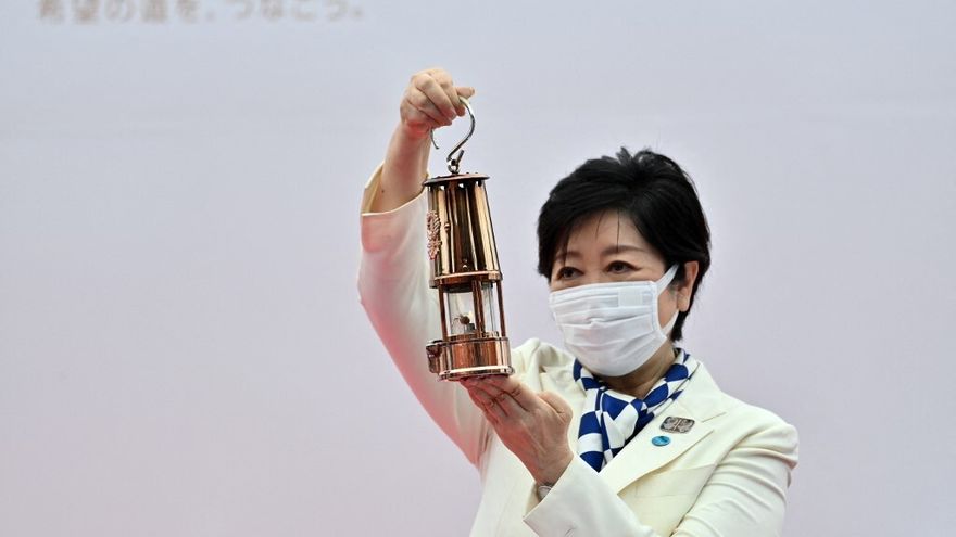 Cuando faltan dos semanas para la ceremonia de inauguración de los Juegos, prevista el 23 de julio, la llama olímpica llegó en una linterna que fue entregada simbólicamente a Yuriko Koike, la gobernadora de Tokio, bajo la lluvia.