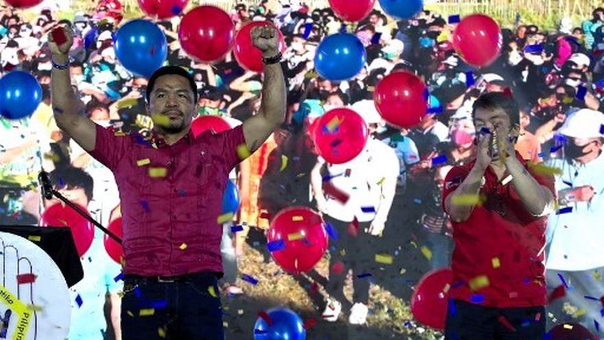 En Filipinas es un héroe nacional riquísimo, casi un semidiós, que multiplica sus roles: diputado, predicador cristiano, jugador y entrenador de baloncesto, cantante, promotor de varias marcas.