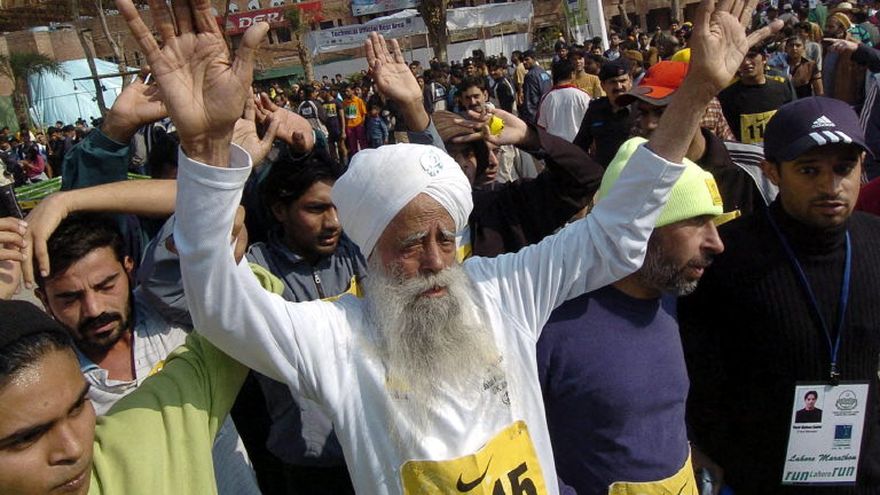 Singh, con su larga barba blanca, causó sensación cuando, a la edad de 89 años, decidió ejercitarse corriendo maratones, inspirado por las emisiones de televisión.