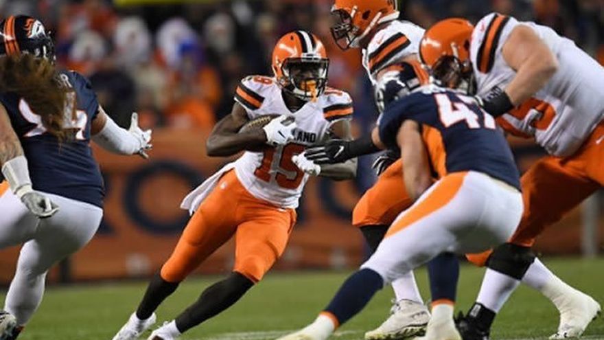 El mariscal de campo novato Baker Mayfield hizo conexión con el receptor abierto Antonio Callaway con pase de dos yardas en el último cuarto y selló la victoria de los Browns de Cleveland, que superaron a domicilio por 16-17 a los Broncos de Denver.