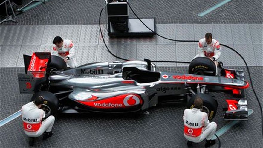 McLaren presentó el viernes su nuevo automóvil de Fórmula Uno en un acto público en Berlín. El equipo británico mostró el modelo MP4-26 pieza por pieza que fue ensamblado frente a los espectadores en Potsdamer Platz y recibió los toques finales por parte de los pilotos Lewis Hamilton y Jenson Button. Button exclamó "¡Este es nuestro nuevo bebé!" El automóvil —con un nuevo sistema de motor eléctrico híbrido— parece muy diferente al del año pasado, con mecanismos aerodinámicos laterales en forma de U para mejorar el flujo aéreo al tren trasero en respuesta a las nuevas reglas sobre la fuerza de adhesión a la pista. También tiene un sistema de alerón trasero electrónicamente ajustable que aumenta la posibilidad de superar a otros competidores. Mclaren terminó segundo en el campeonato mundial de constructores del 2010. La nueva temporada comienza el 13 de marzo en Bahrein.