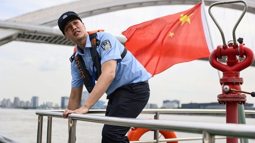 De 28 años de edad, el joven se dedica ahora a patrullar en barco por el río Huangpu que atraviesa Shanghái, justo frente a rascacielos futuristas y la célebre avenida histórica del Bund.