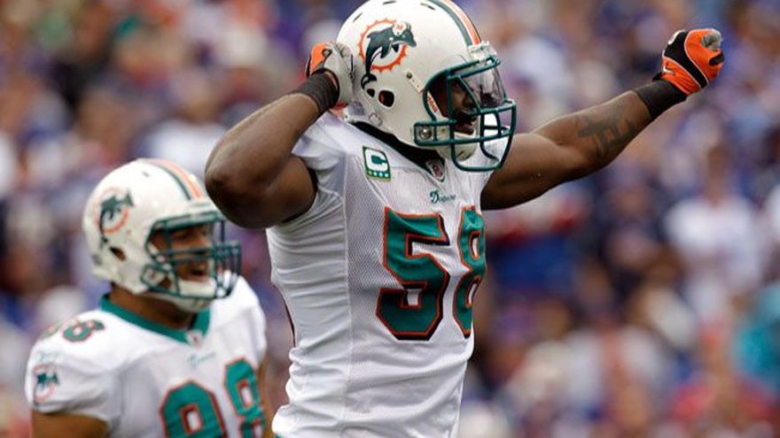 El linebacker Karlos Dansby lideró la nueva defensa de Miami con ocho tackles y un derribo del quarterback rival, Ronnie Brown anotó con un acarreo desde una yarda y Dan Carpenter pateó dos goles de campo para que los Dolphins derrotasen el domingo 15-10 a los Bills de Buffalo. Dansby fue la gran adquisición que hizo Miami en la agencia libre e incidió tremendamente en un partido en el que defensa de los Dolphins limitó en 166 yardas a los Bills. Después de cinco años de derrotas, los Dolphins lograron finalmente ganar en la primera fecha de la temporada. Brown anotó al zambullirse desde una yarda y Carpenter pateó goles de campo de 32 y 43 yardas. Los Bills no lucieron bien ofensivamente en el debut de su técnico Chan Gailey. Buffalo apenas acumuló 72 yardas en sus primeras nueve posesiones hasta que el mariscal de campo Trent Edwards coronó una avance de 80 yardas al conectar con Roscoe Parrish para un pase de touchdown de 31 yardas