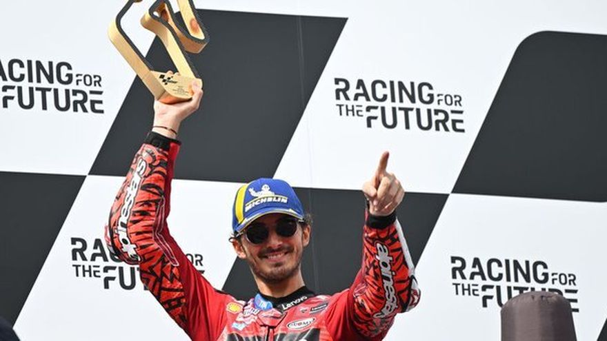 "Pecco" Bagnaia logra así el doblete, tras haberse impuesto el sábado en la carrera esprint, y tiene cinco puntos más que Martín en el liderato del Mundial. El italiano Enea Bastianini (Ducati) completó el podio.