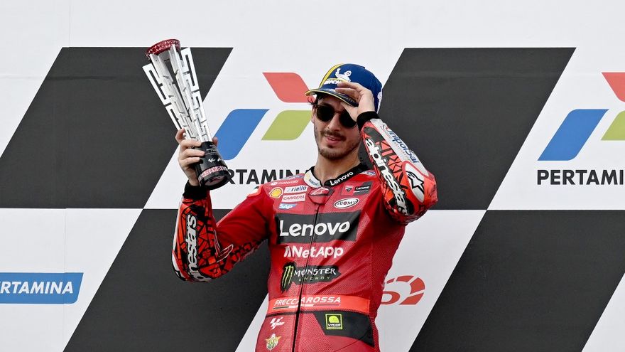 El piloto italiano Francesco Bagnaia, vigente campeón del mundo de MotoGP, se impuso este domingo en el Gran Premio de Indonesia y recuperó el liderato del Mundial de la categoría reina del motociclismo de velocidad, aprovechándose de una caída del español Jorge Martín cuando iba en cabeza.