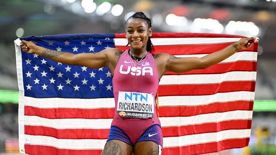 Richardson debutaba en Budapest-2023 en una gran competición internacional, después de no poder acudir a los Juegos Olímpicos de Tokio en 2021 por un control positivo al cannabis y de no conseguir clasificarse para el Mundial de Eugene del pasado año.