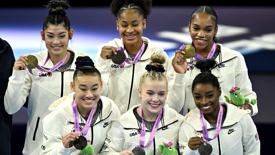 Esta victoria por equipos ofrece a Simone Biles su 26ª medalla mundial y su 20º título, nuevo récord.