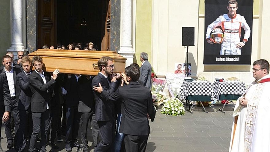 F1/Familia, amigos, colegas y fans de Jules Bianchi despidieron hoy al fallecido piloto de Fórmula 1 en una emocionante ceremonia en la catedral Sainte-Réparate de Niza.
