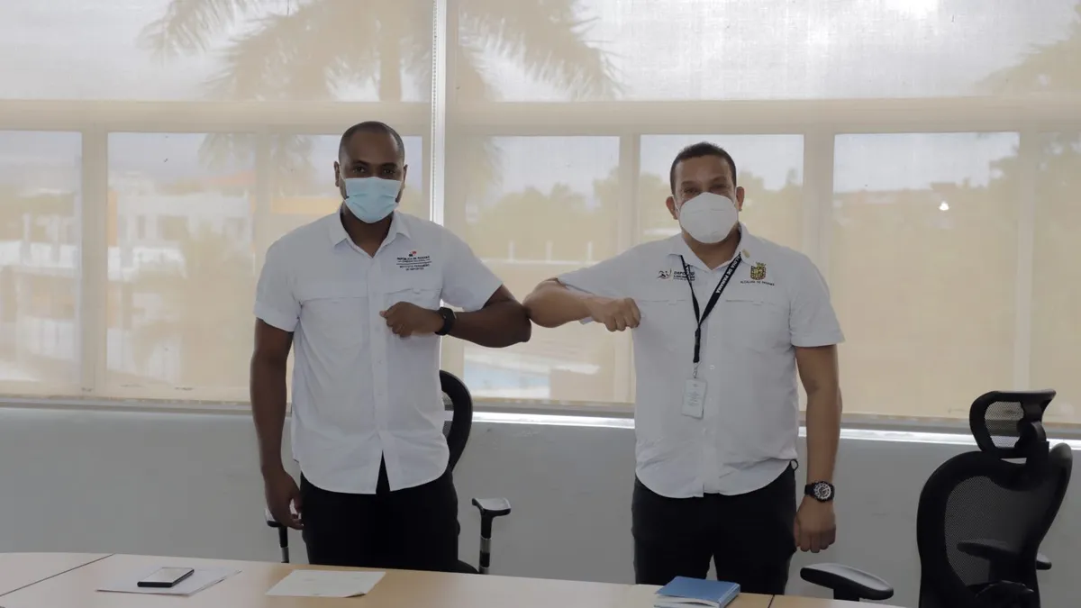 Irving Saladino, director técnico de deporte y recreación del Instituto Panameño de Deportes y Alexis Gómez, subdirector de Deportes de la Alcaldía de Panamá, coordinan las acciones tendientes a concretar la colaboración bilateral que incluye la utilización de las instalaciones deportivas municipales bajo las normas de bioseguridad que establece el Ministerio de Salud.