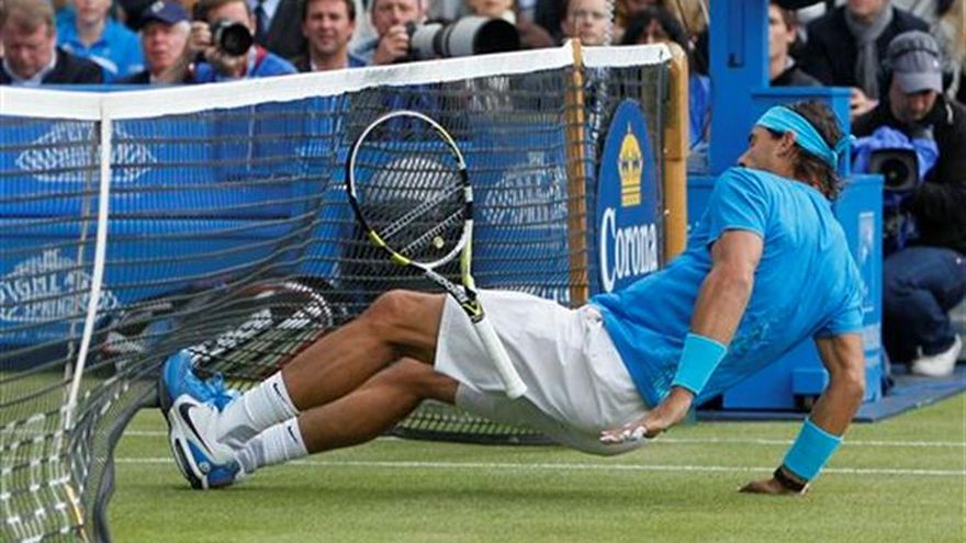 Jo-Wilfried Tsonga derrotó el viernes 6-7 (3), 6-4, 6-1 a un exhausto Rafael Nadal en los cuartos de final del torneo Queen"s. Andy Roddick arrolló 6-2, 6-2 al español Fernando Verdasco y enfrentará en las semifinales al británico Andy Murray, que no tuvo que jugar para avanzar por el retiro de su oponente croata Marin Cilic. Tsonga enfrentará en semifinales al francés Adrian Mannarino, que venció 6-2, 6-7 (14), 6-4 al británico James Ward. Tsonga logró 25 aces contra Nadal, que no pudo descifrar el juego del francés desde la línea de fondo ni sus acercamientos a la red. El partido entre Tsonga y el español fue detenido por lluvia después de apenas dos puntos. El campeón del Abierto de Francia falló una volea en la red al arranque del tercer set, y su oponente francés le rompió el saque para irse arriba 1-0 y dominar el resto del encuentro.