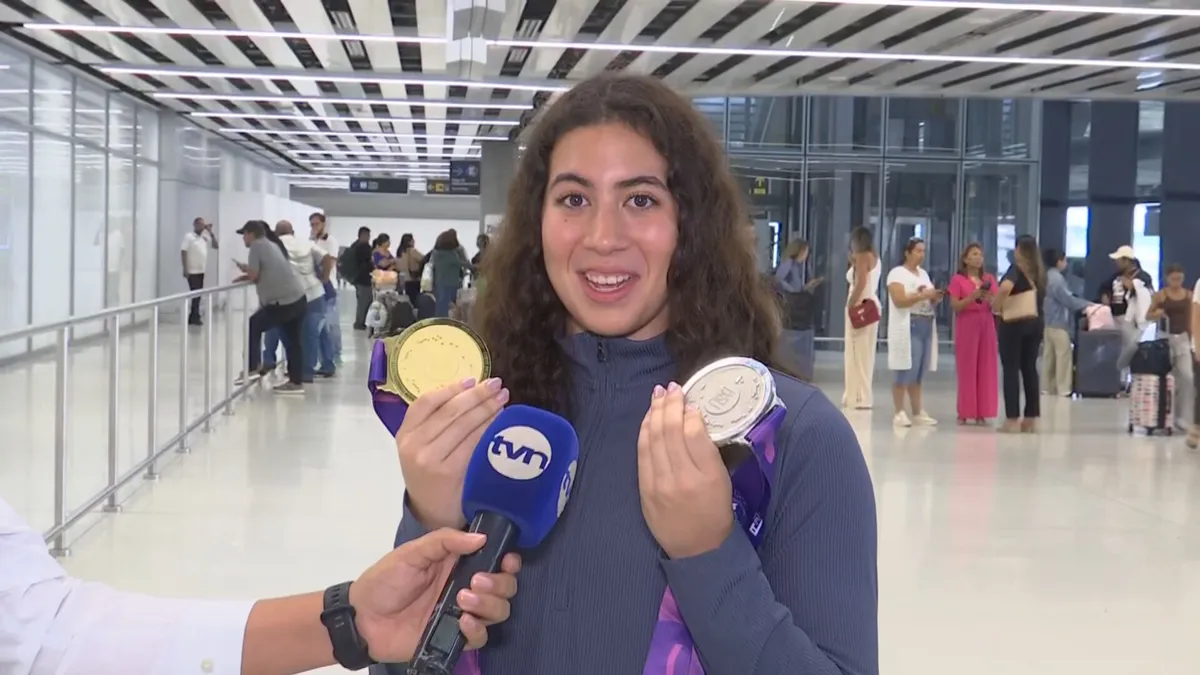 La nadadora, que se adjudicó dos medallas y estableció dos récords panamericanos junior en los 100 y 200 metros pecho, arribó en horas de la mañana al Aeropuerto Internacional de Tocumen, en la ciudad de Panamá, donde fue abordada por periodistas de diferentes medios de comunicación. A través de los micrófonos y las cámaras, Santos indicó que los logros obtenidos en Asunción son especiales para ella ya que los alcanzó en su última participación en el evento continental.