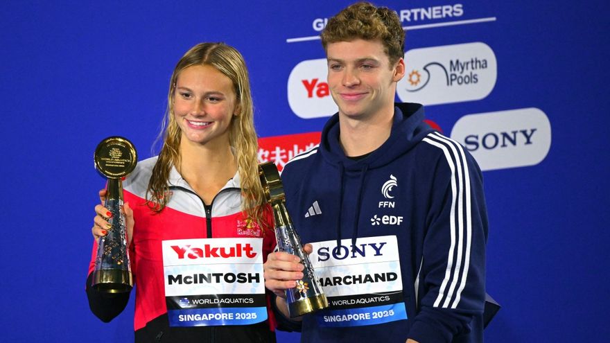Singapur/Dos de las grandes estrellas de la natación actual, el francés Léon Marchand y la canadiense Summer McIntosh, despidieron este domingo el Mundial de Singapur con sendos oros, en los 400m estilos.
