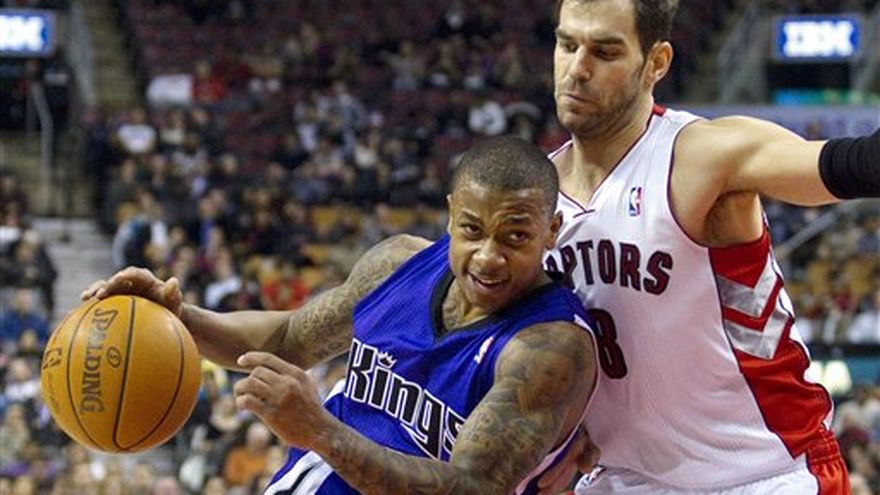 Tyreke Evans anotó 29 puntos, su mayor cifra de la temporada, DeMarcus Cousins contribuyó con 21 unidades y una cifra máxima en su carrera de 19 rebotes para ayudar el miércoles a que los Kings de Sacramento rompieran una racha de siete derrotas en Toronto al superar por 98-91 a los Raptors. Isaiah Thomas encestó 12 de sus 20 puntos en el cuarto período y Jimmer Fredette anotó 10 para los Kings, quienes no habían ganado en Toronto desde el 22 de febrero del 2004. El dominicano Francisco García jugó 17:03 minutos, en los que falló dos tiros de campo, tuvo un rebote y una falta personal. Sacramento había perdido dos juegos seguidos y cuatro de cinco antes de este compromiso, pero el equipo aguantó la presión del adversario para registrar su primera victoria como visitante esta temporada en cinco oportunidades. El brasileño Leandro Barbosa anotó 24 puntos entrando como suplente, su mayor puntaje en la campaña, mientras que DeMar DeRozan y el español José Calderón encestaron cada uno 13 unidades para los Raptors, quienes han perdido cuatro de sus últimos cinco juegos.