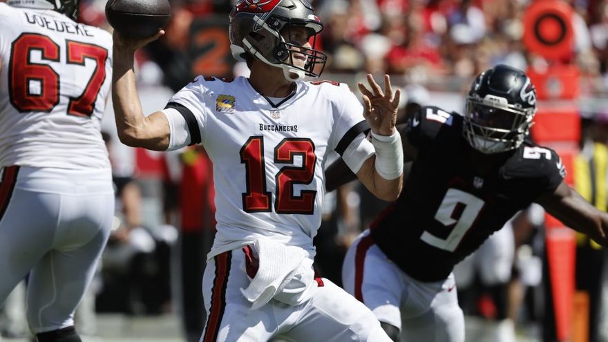 El mariscal de campo Tom Brady, un siete veces ganador del Super Bowl, completó 35 de 52 pases para 351 yardas y un touchdown este domingo para encender a los Bucaneros de Tampa Bay en un triunfo de 21-15 sobre los Atlanta Falcon en el football de la NFL.