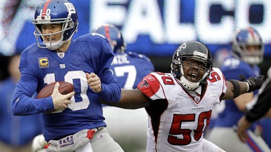 Aun con los pies, Eli Manning es peligroso. Manning acentuó su mejor temporada como profesional el domingo al lanzar tres pases para touchdown y realizar una carrera de 14 yardas que despertó a la ofensiva de Nueva York. Así, el quarterback detonó la demolición de los Falcons de Atlanta por 24-2 en el juego de comodines de la Conferencia Nacional, la primera victoria de postemporada de los Giants desde que superaron sorpresivamente en el Super Bowl a los invictos Patriots de Nueva Inglaterra hace cuatro años. El siguiente enfrentamiento es un gran reto para los Giants (10-7): los campeones defensores Packers en Green Bay el próximo domingo. Nueva York perdió por 38-35 ante Green Bay en diciembre. "Sabemos que son un buen equipo", dijo Manning. "Jugamos contra ellos con fuerza aquí, hicimos algunas cosas bien, anotamos puntos. Sabemos que ofensivamente vamos a tener que jugar con dureza, anotar puntos". Los Giants, el equipo que no sabía correr con el balón, llegarán con buen paso a Green Bay, llevando consigo una defensiva a la que los Packers (15-1) podrían temer. "La defensa jugó excelente, nos mantuvo adelante", dijo Manning. También tienen una ofensiva encabezada por Manning, quien conectó en el tercer cuarto un pase con Hakeem Nicks para anotación de 72 yardas que dejó fuera de la contienda a unos ineficaces Falcons (10-7). Manning completó además un pase de cuatro yardas para anotación con Nicks en el segundo período y uno de 27 yardas con Mario Manningham en el último cuarto para sellar el triunfo. Los Giants están jugando con mejor equilibrio a la ofensiva y más tacañería a la defensiva que los que mostraron durante la mayor parte de la temporada regular. Su viaje anterior en postemporada al Lambeau Field fue una victoria por 23-20 en tiempo extra, dos semanas antes de derrotar a los Patriots. Las claves del primer juego de postemporada en el estadio MetLife fueron la defensa de Nueva York, que nunca permitió a Atlanta meterse en el partido, y el juego por tierra —el peor de la liga— que logró su mejor total de la temporada con 172 yardas. De ésas, 92 fueron conseguidas por Brandon Jacobs y 63 por Ahmad Bradshaw. Los Giants promediaron 5,5 yardas por carrera, dos yardas más que en la campaña regular. Pero fue la escapada y carrera de 14 yardas de Manning en tercera oportunidad en el segundo período la que prendió la chispa ofensiva de los Giants. Jacobs logró pronto una carrera de 34 yardas y Manning se conectó con Nicks para poner adelante al equipo por 7-2. "No creo que nadie haya planeado que yo corra con el balón", dijo el quarterback. "Pero obviamente hubo un par de situaciones en que tienes que hacerlo, no me asusta". Los Giants nunca tuvieron que preocuparse, ya que los Falcons se dejaron llevar a su tercera derrota consecutiva en postemporada con el entrenador Mike Smith y el quarterback Matt Ryan.