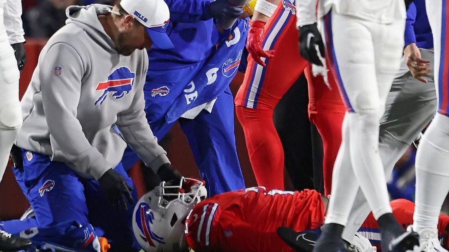 Desde la banda, su compañero Damar Hamlin siguió cabizbajo este dramático episodio que evocó al que él mismo vivió en enero, cuando sufrió un paro cardíaco en pleno partido de los Bills. Hamlin fue reanimado en el campo y después protagonizó una asombrosa recuperación hasta volver al equipo para jugar esta temporada.