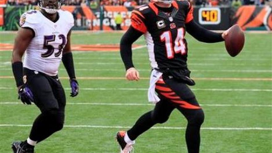 Andy Dalton lanzó dos pases de anotación, logró un touchdown mediante un acarreo e impuso un par de récords de los Bengals de Cincinnati, que derrotaron el domingo 34-17 a los Ravens de Baltimore, campeones defensores del Super Bowl, quienes quedaron eliminados de los playoffs. Dalton, un quarterback que está en su tercer año en la NFL, tuvo una noche más bien errática, en la que le interceptaron cuatro envíos. Los Bengals (11-5) van a la postemporada como campeones de la División Norte de la Conferencia Americana. Los Ravens (8-8) perdieron sus últimos dos partidos, para ser el 15to campeón del Super Bowl que no llega a los playoffs a la campaña siguiente y el sexto al que le ocurre esto en los últimos 12 años. En Cincinnati, sólo hay una cosa en mente: ganar al fin un partido de postemporada. Los Bengals no lo logran desde la década de 1990 y están empatados en la séptima peor racha en la historia de los playoffs. La mayor parte de la atención se pondrá sobre Dalton, quien rompió los récords del club que ostentaba Carson Palmer en los rubros de pases de anotación y yardas por aire.