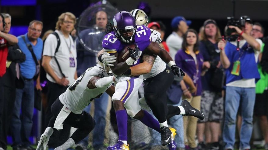 Las miradas estaban puestas en ver de nuevo al corredor estelar Adrian Peterson en territorio de los Vikings de Minnesota, su equipo durante las pasadas 10 temporadas, hasta que decidió fichar por los Saints de Nueva Orleans, que fue con quienes llegó para hacer el debut en la nueva temporada de la Liga Nacional de Fútbol Americana (NFL).