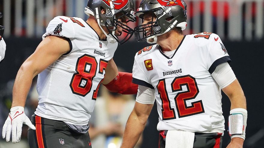De 44 años, Brady tuvo TD de 27 y 11 yardas con su compañero Gronkowski.