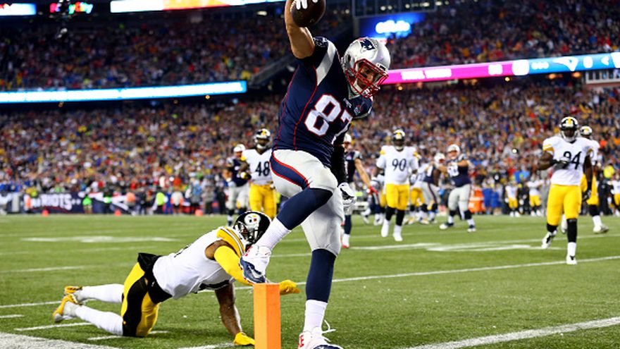 Rob Gronkowski anota uno de los touchdowns de los Patriots / Getty Images