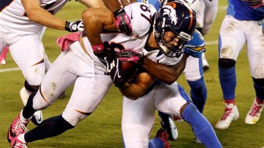 Peyton Manning lanzó tres pases para touchdown en la segunda mitad mientras que Tony Carter y Chris Harris anotaron con balones sueltos de Philip Rivers para que los Broncos de Denver remontaran una desventaja de 24-0 en la primera mitad y propinaran el lunes una sorpresiva derrota por 35-24 a los Chargers de San Diego. Manning completó 13 de 14 pases para 167 yardas en la segunda mitad y los Broncos (3-3) empataron a los Chargers en el liderato de la División Oeste de la Conferencia Americana. Rivers sufrió cuatro intercepciones —tres en el último cuarto— y dos balones perdidos. El pase para anotación de 21 yardas de Manning a Brandon Stokley puso a Denver por primera vez arriba en el marcador, 28-24, cuando faltaban 9:03 para el final. Stokley superó en un salto al defensive back Marcus Gilchrist, atrapó el balón y alcanzó a tocar con los pies la zona de anotación para touchdown, aunque salió del campo por el impulso. Harris selló la victoria con una intercepción, emprendió la carrera y anotó a 2:05 minutos del final. Fue su segunda atrapada de un lanzamiento rival en la noche. Manning conectó 24 de 30 pases para 309 yardas y sufrió una intercepción.