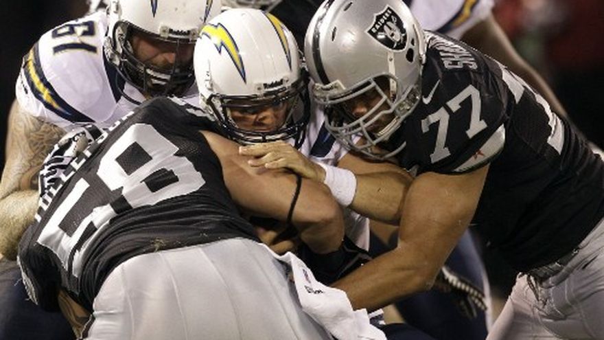 El mariscal de campo Philip Rivers hizo valer su experiencia y dirigió el ataque ganador de los Chargers de San Diego que se impusieron de visitantes por 22-14 ante los Raiders de Oakland en el segundo partido de la tradicional jornada de los lunes por la noche de la Liga Nacional de Fútbol Americano (NFL). La victoria se dio en el partido inaugural de la nueva temporada para ambos equipos y del debut de Dennis Allen como el nuevo entrenador en jefe de los Raiders. Rivers encontró al receptor abierto Malcom Floyd para enviarle un pase de siete yardas de anotación y el pateador Nate Kaeding logró cinco goles de campo que aseguraron la victoria de los Chargers. El veterano mariscal de campo completó 24 de 33 pases para 231 yardas no le interceptaron ningún envío y fue derribado una vez en cinco intentos. Los Chargers no brillaron en su juego, pero fueron superiores a los Raiders y además pudieron probar como titular al novato Mike Harris, en la posición de tacle izquierdo, aunque no fue seleccionado en el sorteo universitario. Mientras que también pudieron superar la ausencia por lesión del corredor estelar Ryan Mathews y el receptor abierto Vincent Brown. Los Raiders que querían comenzar una nueva era de manera positiva, con un triunfo, no pudieron hacerlo porque la ofensiva fue incapaz de conseguir una anotación de "touchdown" hasta que en el último minuto del partido lo consiguieron cuando ya no tenían opción a ganar el partido. El pateador Sebastian Janikowski hizo dos goles de campo con tiros de 51 y 19 yardas, respectivamente, mientras que el mariscal de campo Carson Palmer mandó un pase de dos yardas a receptor abierto Rod Streater para que consiguiese "touchdown". La ofensiva hizo también los dos puntos de conversión para cerrar el marcador con un minuto antes que concluyese el partido que se disputó en el Oakland-Alameda County Coliseum, de Oakland, ante 61.896 espectadores.