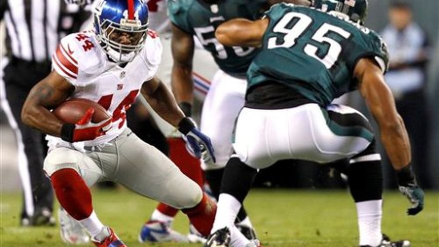 Lawrence Tynes desperdició dos intentos de goles de campo para 54 yardas cuando faltaban 15 segundos y los Eagles de Filadelfia se impusieron el domingo por la noche y lograron una victoria de 19-17 ante los Giants de Nueva York. Mientras que LeSean McCoy abría el camino sobre el terreno, Michael Vick guíaba a los Eagles (3-1) para volver a ganar. Alex Henery dio puntapié de 26 yardas para gol de campo cuando quedaba 1:49 minutos y los Eagles superaron dos penales por interferencias en pases en un acarreo final de Nueva York. Los Giants (2-2) , ganadores del Super Bowl del año pasado, han tenido dificultades con Filadelfia, al perder ocho de los últimos nueve partidos. McCoy marcó 121 de sus 123 yardas en la segunda mitad. Tuvo en total seis acarreos para dos yardas en medio tiempo.