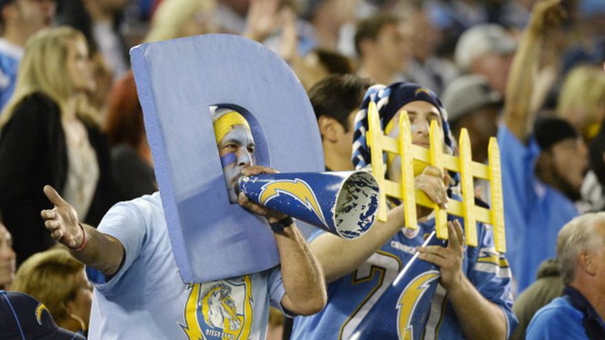 Adornados en azul y oro, aficionados de los San Diego Chargers realizaron una petición apasionada a la NFL para mantener a su equipo en San Diego, donde lleva más de 50 años.
