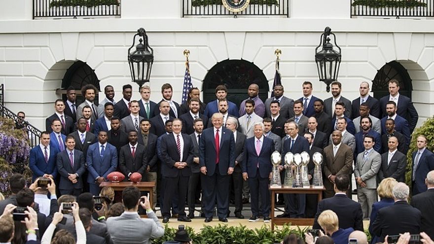 Trump siguió la tradición presidencial de acoger en la Casa Blanca a los ganadores de las grandes competiciones deportivas estadounidenses, y recibió a una treintena de jugadores de los Patriots y a los entrenadores y directivos del equipo en los jardines de la Casa Blanca.