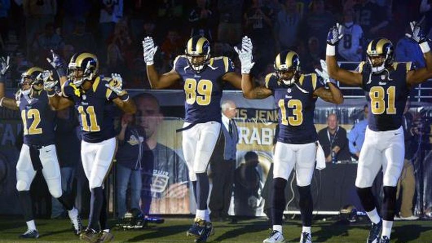 SAN LUIS, Missouri, EE.UU. (AP) -- Cinco jugadores de los Rams armaron tremendo revuelo al levantar sus brazos cuando salían al terreno de juego en señal de solidaridad con las protestas que tienen lugar en Ferguson por la muerte de un joven negro a manos de un policía blanco. "Tiene que haber un cambio", declaró el tight end Jared Cook tras la paliza 52-0 que los Rams propinaron a los Raiders el domingo. "Tiene que haber un cambio que comience con la gente que tiene más influencia en el mundo". El técnico Jeff Fisher declaró que no sabía que los jugadores, todos negros, planeaban hacer una protesta. La actitud de los jugadores, en todo caso, cayó como una puñalada en la Asociación de Agentes de la Policía de San Luis, la cual pidió sanciones para ellos y exigió una disculpa a la NFL. Algunos testigos dijeron que Michael Brown tenía los brazos en alto cuando el agente Darren Wilson lo mató de un tiro en agosto. Wilson declaró que Brown, quien estaba desarmado, lo había golpeado y había tratado de sacarle el arma y un jurado investigador determinó que no había razones para llevarlo a juicio. Un comunicado de la Asociación, distribuido por KSDK (http://on.ksdk.com/1vF9Neq ), dijo que el gesto de los jugadores fue "de mal gusto, ofensivo y provocativo". Los receptores Tavon Austin y Kenny Britt asomaron primero en medio de una columna de humo y detrás suyo llegaron Cook, Stedman Bailey y Chris Givens. Los cinco se detuvieron un momento y levantaron sus brazos. "No quiero que la gente de la comunidad piense que ignoré lo que está pasando", afirmó Britt. ""Qué me gustaría ver? Un cambio en América (Estados Unidos)". Luego de que Tre Mason anotó un touchdown que puso la pizarra 45-0, él y Britt volvieron a levantar los brazos.
