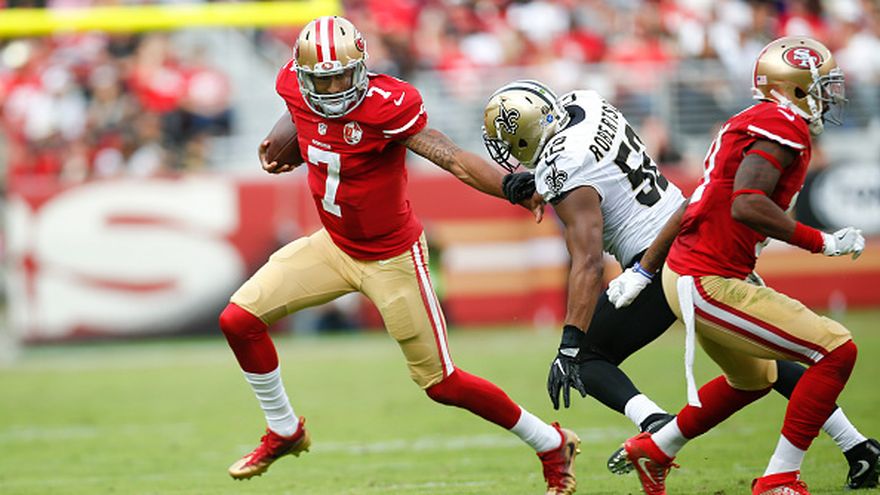 Kaepernick ha tomado una postura contra la desigualdad racial y la opresión durante toda la pretemporada y la temporada regular de la NFL, arrodillándose durante el himno nacional.