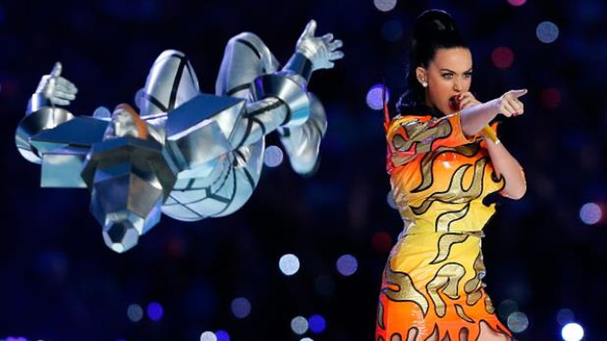 La cantante Katy Perry mantuvo encendido el University of Phoenix Stadium en su actuación en el descanso de la Super Bowl.