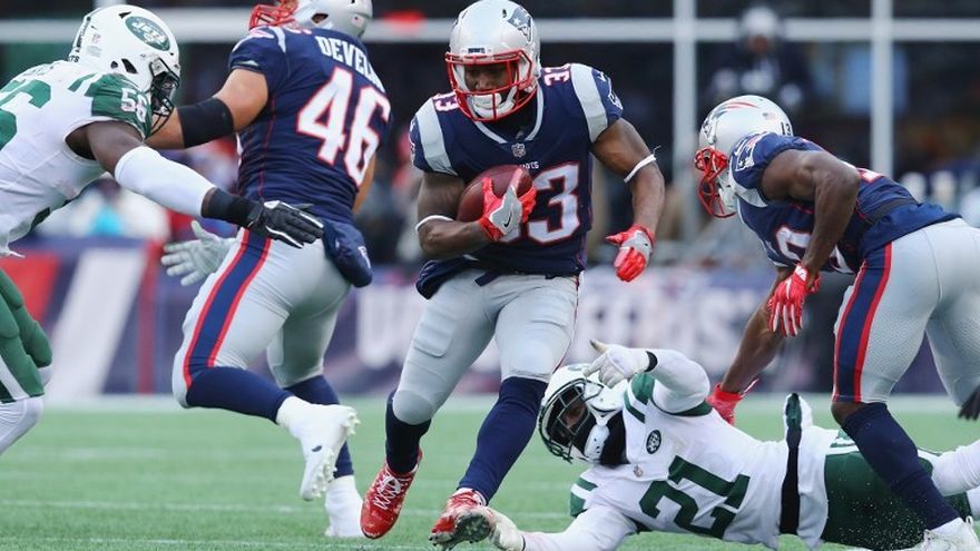 Dion Lewis corrió para poner el balón en la zona de las diagonales y atrapó un pase de anotación en el triunfo de los Patriots de Nueva Inglaterra por 26-6 sobre los Jets de Nueva York.