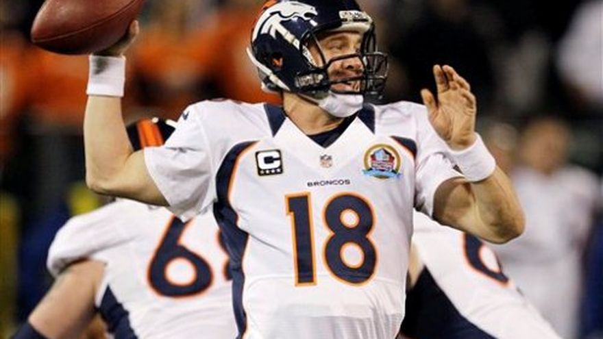 Peyton Manning completó su trigésimo pase de touchdown de la temporada en la primera ofensiva del encuentro para que los Broncos de Denver consiguieran su octava victoria consecutiva al vencer el jueves por 26-13 a los Raiders de Oakland. Knowshon Moreno corrió para 119 yardas y una anotación con 32 acarreros, el mayor número de su carrera, y Matt Prater conectó cuatro goles de campo para los Broncos (10-3), que se separaron medio juego de Nueva Inglaterra y Baltimore para el segundo mejor record de la Conferencia Americana. Denver visitará Baltimore la semana entrante en un encuentro que ayudará a decidir quién logra descansar la primera ronda de playoffs. Carson Palmer lanzó una intercepción que arruinó la posibilidad de una anotación para los Raiders (3-10) y perdió un balón que se convirtió en touchdown para los Broncos, en la sexta derrota consecutiva de Oakland.