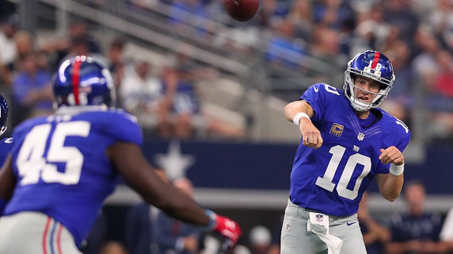 Manning completó 19 de 28 pases para 207 yardas, incluyendo un pase de 45 al receptor abierto Odell Beckham Jr. que dejó la mesa puesta para la primera anotación del equipo de Nueva York.