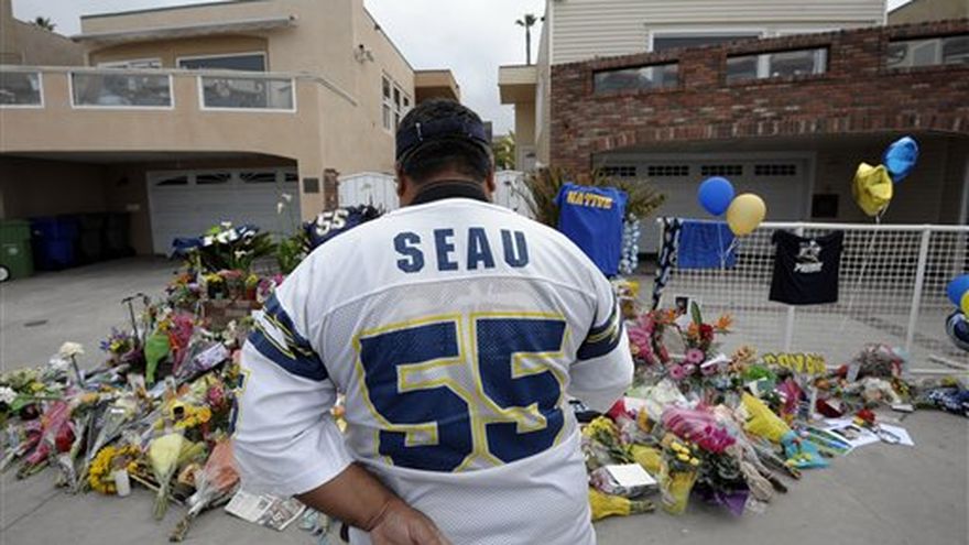 El aparente suicidio de Junior Seau conmocionó a una ciudad entera y entristeció a ex compañeros de equipo, quienes recordaron las fieras jugadas del ex astro de la NFL y su hábito de llamar "buddy" (amigo) a todos a su alrededor. Todos también están preguntándose qué provocó la muerte de Seau la mañana del miércoles en lo que la policía dijo parece ser un suicidio. Tenía 43 años. "Lamento decirlo, Superman ha muerto", dijo Shawn Mitchell, un capellán de los Chargers de San Diego. "Todos nosotros podemos parecer magníficos, pero todos necesitamos acercarnos a otros y encontrar apoyo cuando estamos sufriendo". El jefe de policía Frank McCoy dijo que la novia de Seau reportó haberlo encontrado inconsciente con una herida de bala en el pecho y que los esfuerzos por salvarle la vida fueron infructuosos. Se encontró una pistola cerca de él, indicó McCoy. La policía señaló que no se halló nota suicida y que no sabían de inmediato a nombre de quién estaba registrada el arma. Ni Mitchell ni la ex esposa de Seau sabían los motivos qué podrían haber llevado a matarse al emotivo ex líder del equipo de su ciudad natal. "No tenemos ninguna pista, en absoluto", dijo Gina Seau. "Estamos tan asombrados y conmocionados como todos. Estamos horriblemente tristes. Lo extrañamos y siempre lo amaremos". La muerte de Seau en Oceanside, en el condado norteño de San Diego, conmocionó a la región que representó con un abandono que rayaba en lo imprudente. La misma intensidad que llevó a la expulsión del estelar linebacker por pelear en su primer partido de exhibición ayudó a conducir a los Chargers a su único Super Bowl después de la temporada de 1994. Feroz a la hora de derribar jugadores, solía saltar, cerrar un puño y dar una patada tras echar al suelo a algún jugador que portara el balón o a un quarterback. "Es una cosa triste. Es difícil de entender", dijo Bobby Beathard, que como gerente general de los Chargers sacó a Seau del sur de California a la hora de hacer la quinta elección en el draft de 1990. "Realmente era un señor magnífico. Si escogías a un jugador que te encantaría tener la oportunidad de elegir en el draft y tenerlo en el equipo y como compañero, Junior y Rodney (Harrison), ellos eran el tipo de señores que te gustaría tener", agregó.