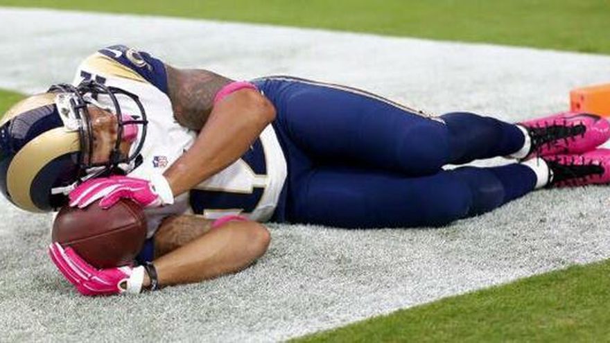 El receptor abierto de los St. Louis Rams Stedman Bailey, aparentemente pretendió tomarse una siesta, después de haber conseguido una anotación en el tercer cuarto ante los Arizona Cardinals, utilizando el ovoide como su almohada.