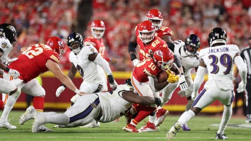 Estados Unidos/Los Kansas City Chiefs, actuales bicampeones iniciaron la temporada 2024 de la liga de football americano (NFL) este jueves con una victoria 27-20 sobre los Baltimore Ravens en la que el mariscal de campo Patrick Mahomes completó 20 de sus 28 pases para 291 yardas y un touchdown.