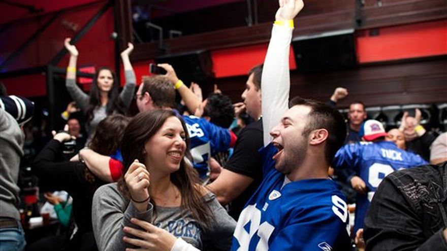 Las dos caras de la moneda se mostraron en Nueva York y Boston, cuando en la primera ciudad se preparan para un desfile el martes, en la otra, aunque en general no hubo mayores disturbios, la policía arrestó a 14 personas en un campus universitario. La repetición fue tan buena como la original para los aficionados de los Giants de Nueva York cuando vieron el domingo a su equipo vencer 21-17 a los Patriots de Nueva Inglaterra de nuevo. En Times Square, los aficionados salían de bares deportivos en la zona coreando: "¡Giants! ¡Giants! ¡Giants!". Los conductores también gritaban mientras que los transeúntes ondeaban camisetas de Eli Manning. La policía intentaba impedir que los transeúntes se aglomeraran en las esquinas, pero muchedumbres se agolpaban en todas las esquinas festejando con cualquiera vestido de blanco y azul como los Giants. el alcalde de Nueva York que planeaba asistir al encuentro en Indianápolis, anunció que habría un desfile en la ciudad y una ceremonia para los campeones el martes. "Big Blue (como se les conoce a los Giants) nos dieron un partido para recordar y el martes les vamos a ofrecer un desfile para recordar", dijo Bloomberg en un comunicado dado a conocer después del encuentro. En cambio, en Boston cientos de policías que estaban cuidando las calles de la ciudad tuvieron poco que hacer mientras que los aficionados sufrían en tranquilidad la derrota de su equipo, sin embargo 14 personas fueron arrestadas en la Universidad de Massachusetts-Amherst cuando la policía intentó dispersar una bulliciosa muchedumbre. "Estamos de verdad tristes ahorita", dijo Molly Mackenzie de Boston, que veía el encuentro en un bar cercano a Fenway Park (el estadio de los Medias Rojas de Boston) con dos amigos cuando los Patriots perdían por segunda ocasión en cinco años contra los Giants. Fue un buen juego. Muy cerrado". Los policías de Boston se concentraron en las áreas cercanas a los campus universitarios y bares deportivos, donde previamente las celebraciones se han salido de control. Sin embargo, los aficionados salieron tranquilamente y se fueron. Las cosas fueron un poco más agrestes en la Universidad de Massachusetts, donde la policía antimotines y a caballo usaron bombas de humo para dispersar a unos 1.500 estudiantes que se habían reunido en la principal zona residencial del campus luego del encuentro. Algunos llegaron a los puños, pero nadie salió con heridas tan graves como para ir al hospital y no se reportó daños a propiedad privada, dijo e portavoz Ed Blaguszewski. Trece de los arrestados fueron estudiantes. Serán referidos al decano de la universidad para posibles acciones disciplinarias. La policía en la zona de la universidad decidió dar una orden de dispersión 15 minutos después de que los estudiantes se empezaron a reunir. Les llevó 90 minutos despejar el área. ___ Los periodistas de The Associated Press Karen Matthews y Khristopher J. Brooks en Nueva York, y Jim Morrison desde Boston, contribuyeron con este despacho.