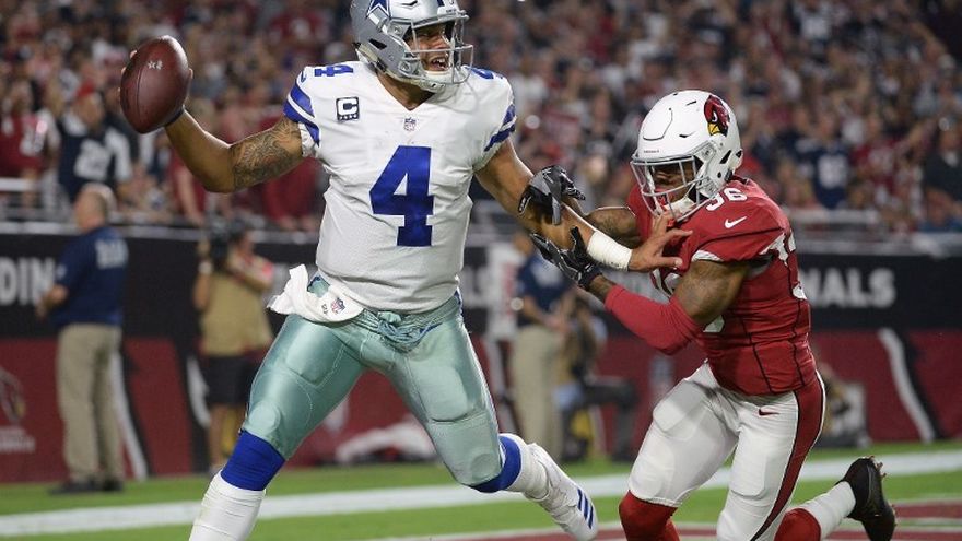 El mariscal de campo Dak Prescott lanzó dos pases de touchdown y saltó sobre los defensivos en las diagonales en un acarreo de 10 yardas que le dio otra anotación con la que los Cowboys de Dallas vencieron a domicilio 17-28 a los Cardinals de Arizona.