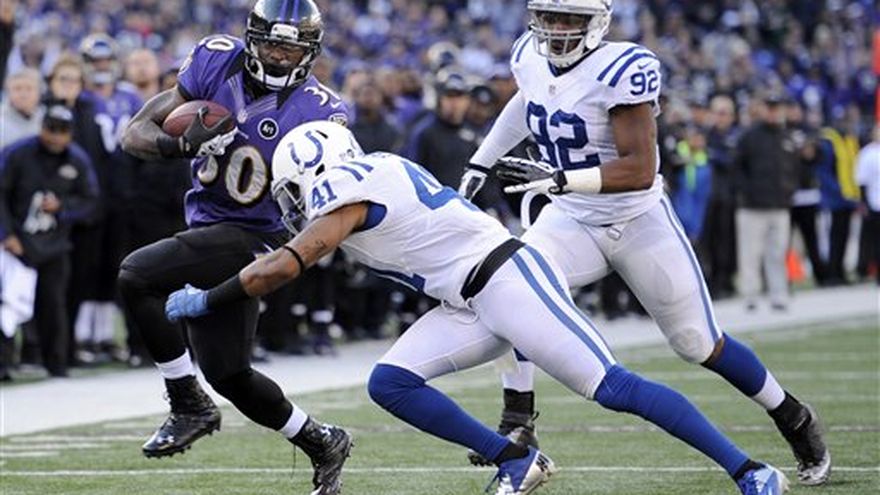 Anquan Boldin estableció un récord de la franquicia con ganancia de 145 yardas en cinco recepciones, incluido el touchdown definitivo, y los Ravens de Baltimore derrotaron por 24-9 a los Colts de Indianápolis en el duelo de comodines de la Conferencia Americana de la NFL. La antes tambaleante defensiva de los Ravens estuvo inquebrantable, inspirada sin duda por Ray Lewis. El astro linebacker reapareció para su último partido en casa antes de retirarse. Baltimore nunca permitió que Andrew Luck, el destacado quarterback novato de los Colts, se sintiera cómodo. Baltimore (11-6), campeón de la División Norte, jugará el próximo sábado contra Denver, campeón de la División Oeste. Los Broncos vencieron a los Ravens por 34-17 hace tres semanas. La derrota terminó una temporada de cambio total de los Colts, que pasaron de una marca de 2-14 a una de 11-6 con pase a la postemporada en el primer año del entrenador Chuck Pagano en Indianápolis. Pagano estuvo fuera de acción 12 semanas para ser atendido por leucemia y regresó la semana pasada. El coordinador ofensivo Bruce Arians, quien tuvo registro de 9-3 como entrenador interino, no estuvo presente el domingo tras ser hospitalizado por un malestar no revelado.
