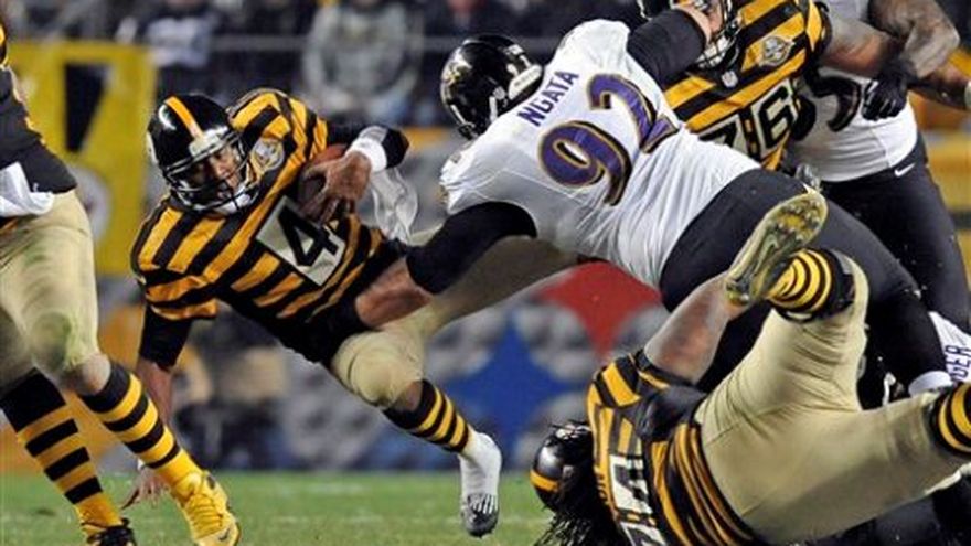 Los Ravens de Baltimore nulificaron a Byron Leftwich, y Jacoby Jones proporcionó la ofensiva que necesitaban para tomar el control de la División Norte de la Conferencia Americana. Jones regresó una patada de despeje para touchdown, Justin Tucker anotó dos goles de campo y Baltimore venció el domingo 13-10 a los Steelers de Pittsburgh. Los Ravens (8-2) se despegaron dos juegos de los Steelers (6-4) después de que inutilizaran a la ofensiva de Pittsburgh, que pasó apuros sin su lesionado quarterback Ben Roethlisberger. Leftwich, en su primer partido como titular en más de tres años, completó 18 de 39 pases para 201 yardas y sufrió una intercepción. Corrió para anotar pero también fue atrapado tres veces detrás de la línea defensiva. Joe Flacco, de Baltimore, no estuvo mejor: completó 20 de 32 pases para 164 yardas, aunque los Ravens no lo necesitaron para dominar a los Steelers por tercera ocasión consecutiva en el Heinz Field.