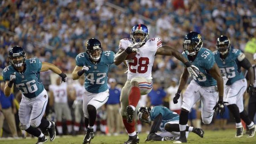 JACKSONVILLE, Florida, EE.UU. (AP) -- Josh Scobee convirtió un gol de campo de 33 yardas, a 28 segundos del final, y los Jaguars de Jacksonville remontaron una desventaja de 21 puntos para superar el domingo 25-24 a los Giants de Nueva York. Los Jaguars (2-10) pusieron fin a una racha de cuatro encuentros y propinaron a los Giants (3-9) su séptima derrota consecutiva, lo que generaría más dudas sobre el futuro del entrenador Tom Coughlin. Nueva York dominó la primera mitad, al anotar 21 puntos en el segundo cuarto. Parecía que los Giants conseguirían su primer triunfo desde comienzos de octubre. Pero Jacksonville jugó como un equipo diferente después del medio tiempo, sobre todo a la defensiva. Geno Hayes obligó a que Eli Manning soltara un ovoide en el comienzo del tercer cuarto, y J.T. Thomas recuperó el balón en la zona prometida. El novato Aaron Colvin se apoderó de otro balón suelto y lo condujo 41 yardas para anotar en el cuarto periodo. Es la primera vez en la historia de la franquicia que Jacksonville anota dos veces mediante su defensiva en el mismo encuentro.