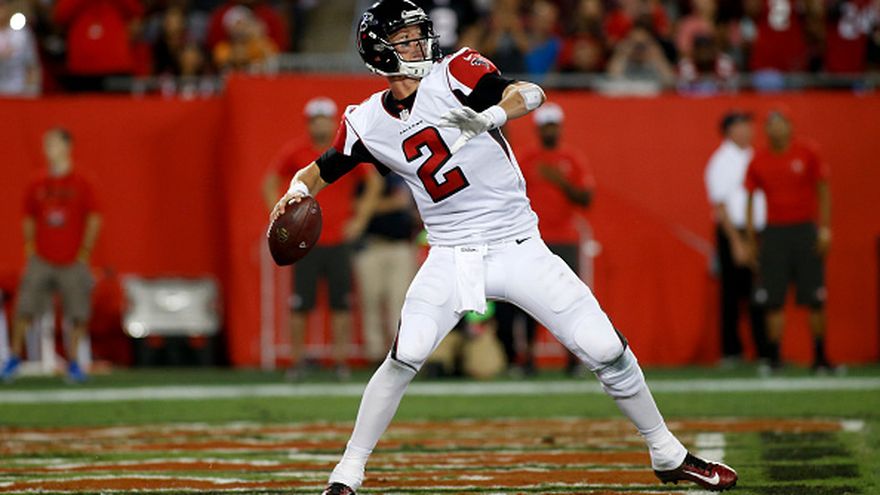 Levine Toiloto, Patrick DeMarco y Austin Hooper también capturaron pases de anotación de Ryan, que lidera la liga con 2.980 yardas y 23 touchdowns por sólo cuatro interceptaciones.