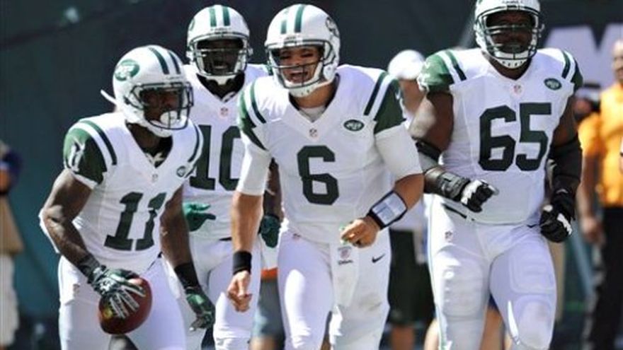 Mark Sánchez lanzó el domingo tres pases para anotación, incluidos dos al novato Stephen Hill, y los Jets de Nueva York hicieron que disminuyeran las preocupaciones sobre su ofensiva con una victoria 48-28 sobre los Bills de Buffalo. Los Jets salpicaron su estrategia ofensiva con la participación de Tim Tebow, quien hizo poco. Tebow recuperó una patada corta tardía de Buffalo, y Jeremy Kerley tuvo una atrapada para touchdown y un regreso de patada para anotación. Antonio Cromartie atrapó una de las tres intercepciones a Ryan Fitzpatrick y condujo el balón hasta la zona de anotación. Fue la mayor cantidad de puntos anotada por los Jets en un partido de inicio de temporada. Esto de parte de un equipo que hizo a muchos preguntarse que esperar de ellos después de que la ofensiva de la formación titul no pudo registrar un touchdown en los tres primeros juegos de la pretemporada. Mientras tanto, Mario Williams, la gran contratación de los Bills en el mercado de agentes libres, fue controlado todo el juego por la línea ofensiva de los Jets que protegió a Sánchez.