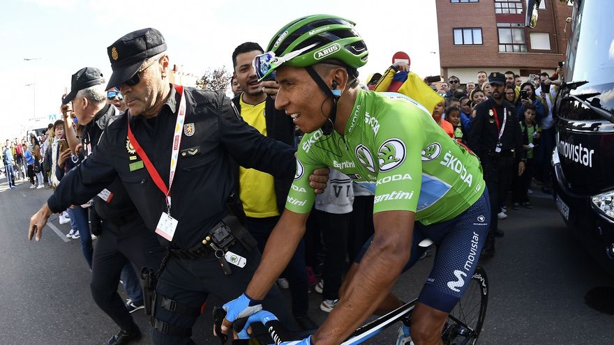 El ciclista colombiano del Movistar Nairo Quintana se mostró feliz este miércoles tras colocarse en segunda posición de la Vuelta a España asegurando que "aquí estamos nuevamente" después de meterse en la lucha por la carrera.