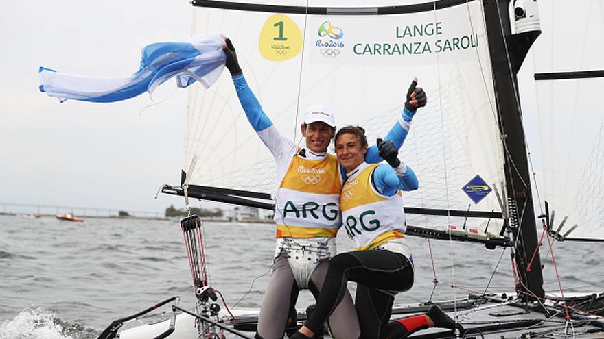 Los argentinos Santiago Lange y Cecilia Carranza ganaron este martes la medalla de oro en la clase Nacra 17 de vela de los Juegos Olímpicos de Rio de Janeiro-2016.