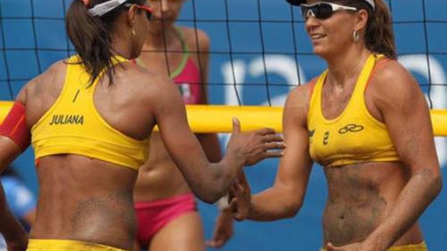 Las parejas brasileñas prosiguieron hoy con pulso firme en el torneo olímpico de voley playa de Londres, con sendas victorias en masculino y femenino. Juliana y Larissa, favoritas al oro, ganaron por 2-0 (21-18 y 21-13) a las alemanas Holtwick y Semmler y se afianzaron en la cabeza del grupo A con cuatro puntos, uno por encima de sus rivales de hoy y de la pareja checa. Pedro Cunha y Ricardo batieron a los británicos Grotowski y García-Thompson, quien es nacido en España, por 2-0 (21-17 y 21-12), en su segunda victoria seguida que les permite liderar el Grupo F, con un punto de holgura sobre los noruegos y los canadienses. El campeonato olímpico de voley playa reúne a 24 parejas masculinas y 24 femeninas en las arenas del Horse Guard Parade de Londres.