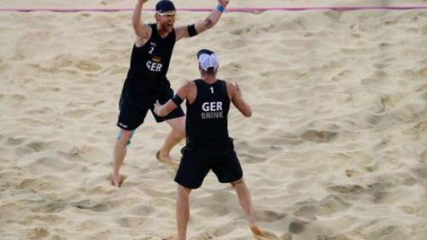 El dúo brasileño de Emanuel Rego y Alison Cerutti perdió este jueves con la pareja alemana de Julius Brink y Jonas Reckermann la final masculina del torneo de vóley-playa de los Juegos Olímpicos de Londres-2012 al caer por 2-1 (23-21, 21-16, 16-14). Los actuales campeones mundiales y panamericanos estuvieron imprecisos en el primer set, luego ajustaron el ataque para llevarse el segundo tramo, pero en un tercer set no apto para cardíacos levantaron un 14-11 pero la potencia de los teutones terminó por aplastarlos con dos puntos finales. Rego buscaba su segunda presea de oro luego de la ganada en Atenas-2004. El brasileño, de 1,90 m, es una de las figuras emblemáticas de este deporte nacido en Hawai, pues ha participado consecutivamente en citas de verano desde que el vóley-playa apareció por primera vez en el programa olímpico de Atlanta-1996. En cambio Cerutti, de 2,03 m, un poderoso atacante al que llaman "el Mamut", es debutante en Juegos Olímpicos. La pareja letona de Martins Plavins y Janis Smedins se adjudicó más temprano la medalla de bronce al sorprender a los holandeses Reinder Nummerdor y Richard Schuil por 2-1 (19-21, 21-19, 15-11). TOMADO DE AFP
